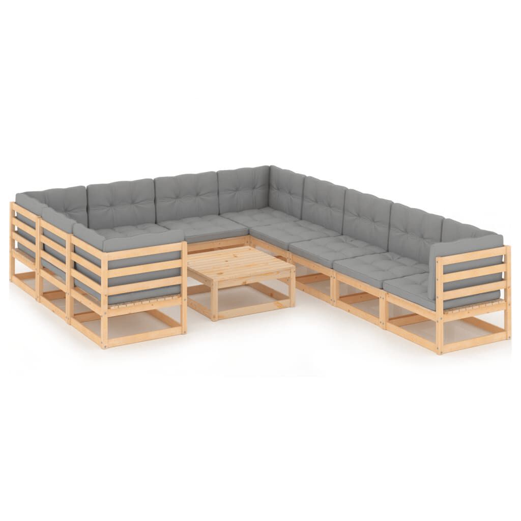 vidaXL 11-osaline aiadiivanikomplekt patjadega, männipuit