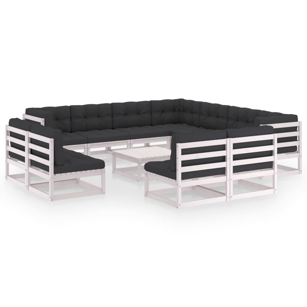 vidaXL 12-osaline aiamööbli komplekt istmepatjadega, valge, männipuit