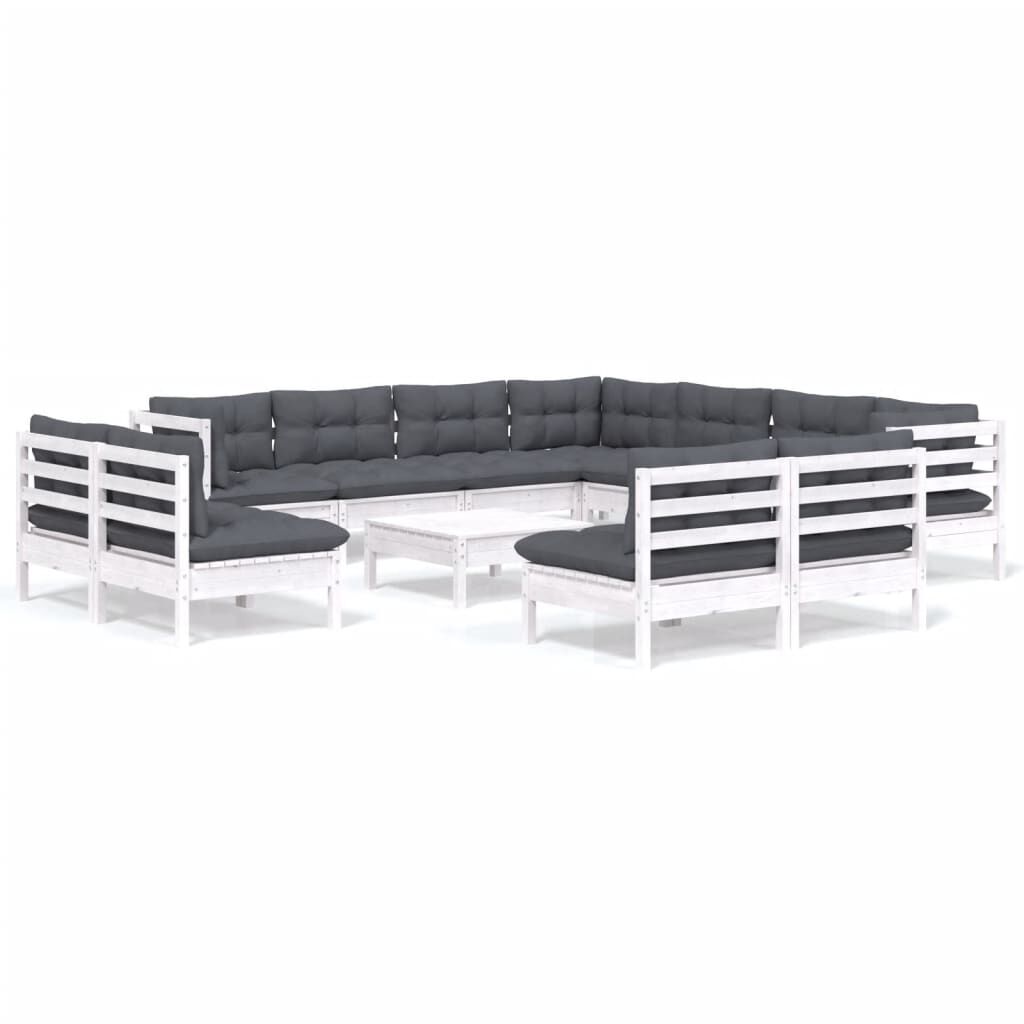 vidaXL 12-osaline aiamööbli komplekt istmepatjadega, valge, männipuit