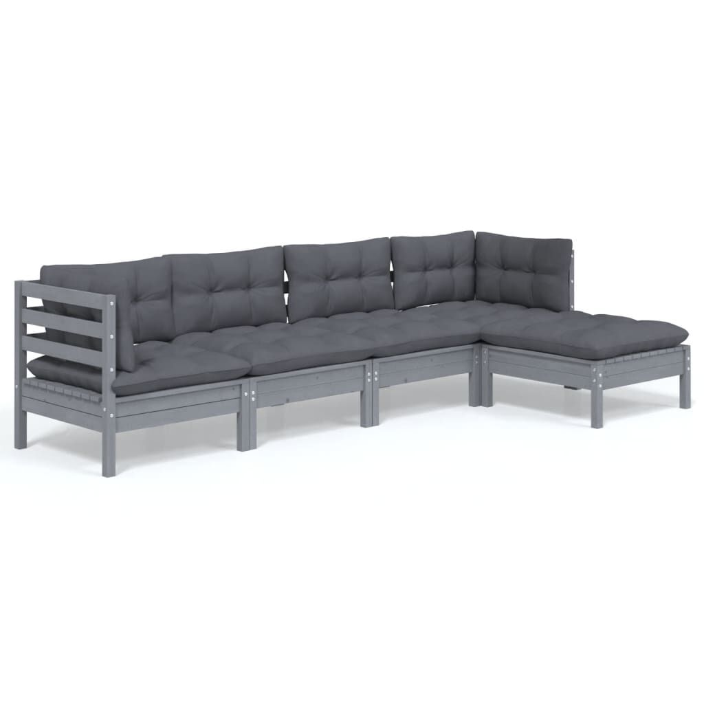 vidaXL 5-osaline aiamööbli komplekt istmepatjadega, hall, männipuit