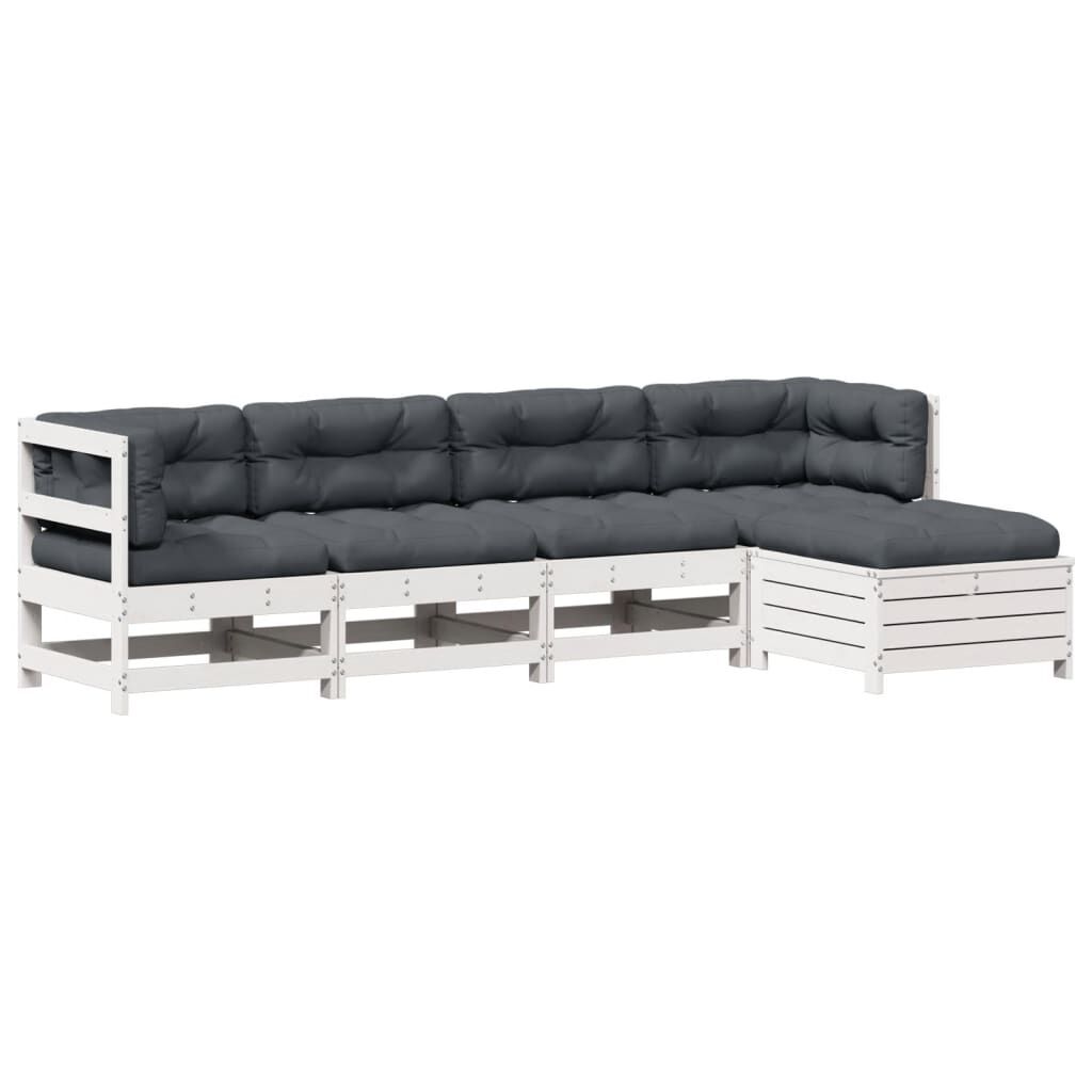 vidaXL 5-osaline aiamööbli komplekt patjadega, valge, männipuit
