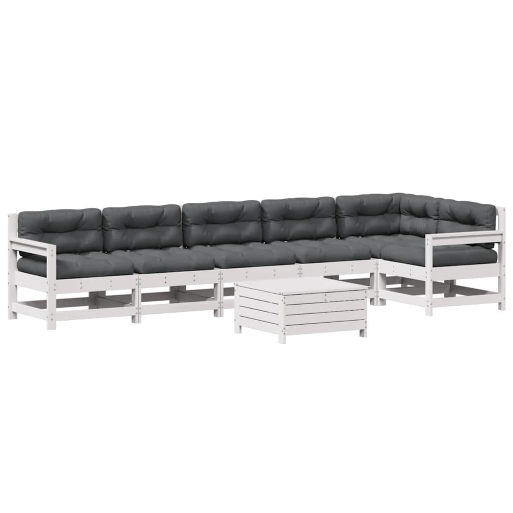 vidaXL 7-osaline aiamööbli komplekt istmepatjadega, valge, männipuit
