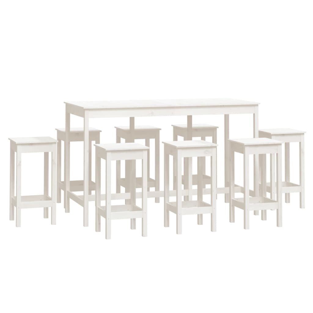 vidaXL 9-osaline baarikomplekt, valge, männipuit