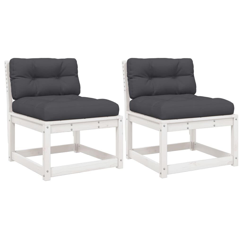 vidaXL aia jalapingid patjadega 2 tk, valge, männipuit