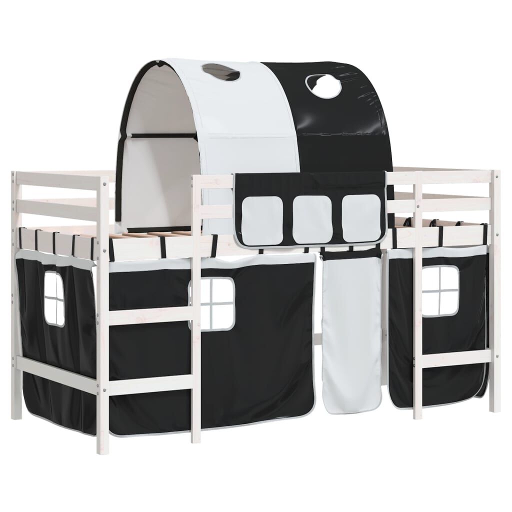 vidaXL laste kõrge voodi tunneliga, valge/must, 90x200 cm, männipuit