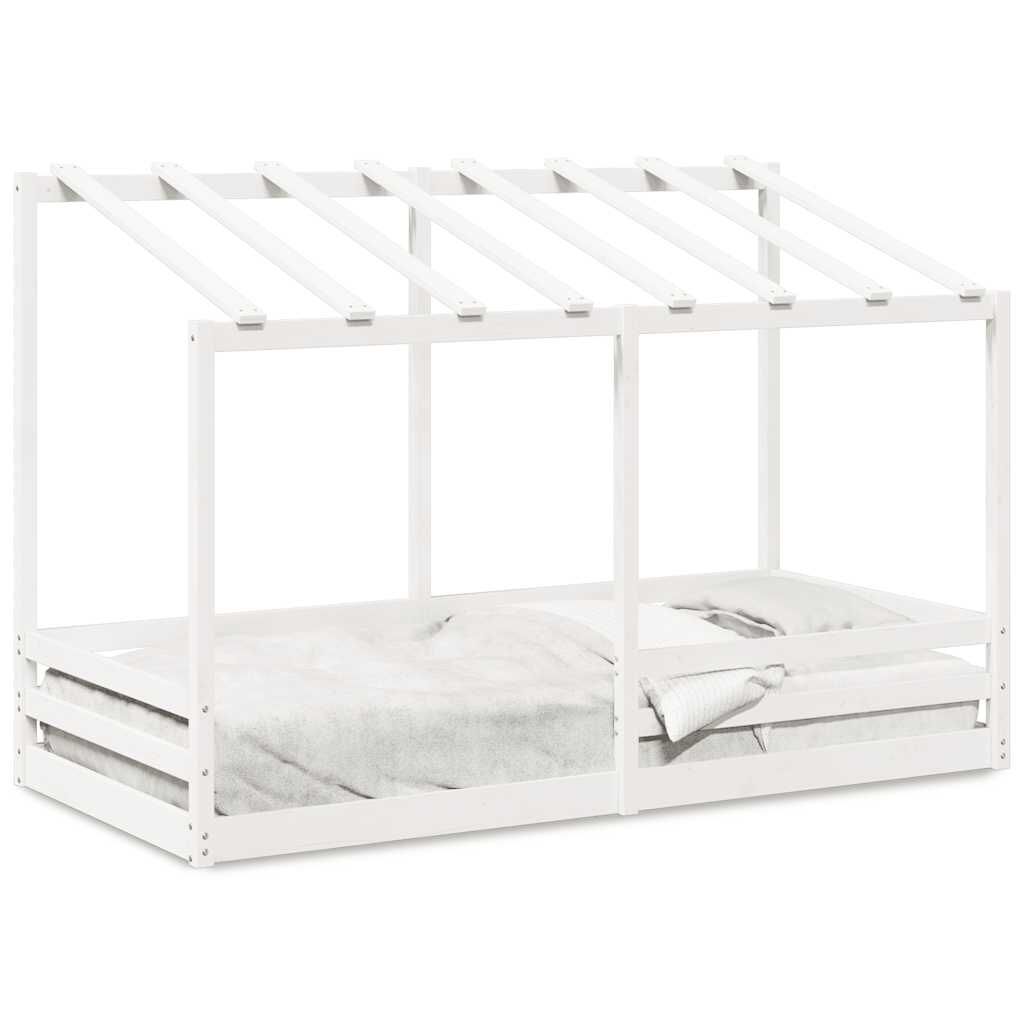 vidaXL lastevoodi koos katusega, valge, 100 x 200 cm, männipuit