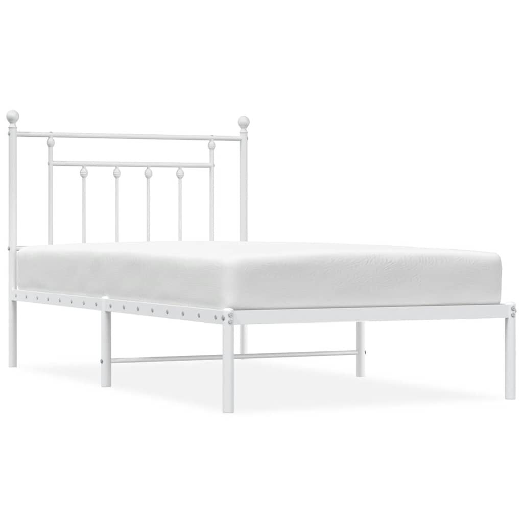 vidaXL metallist voodiraam peatsiga, valge, 100 x 190 cm