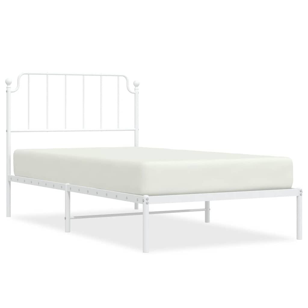 vidaXL metallist voodiraam peatsiga, valge, 100 x 190 cm