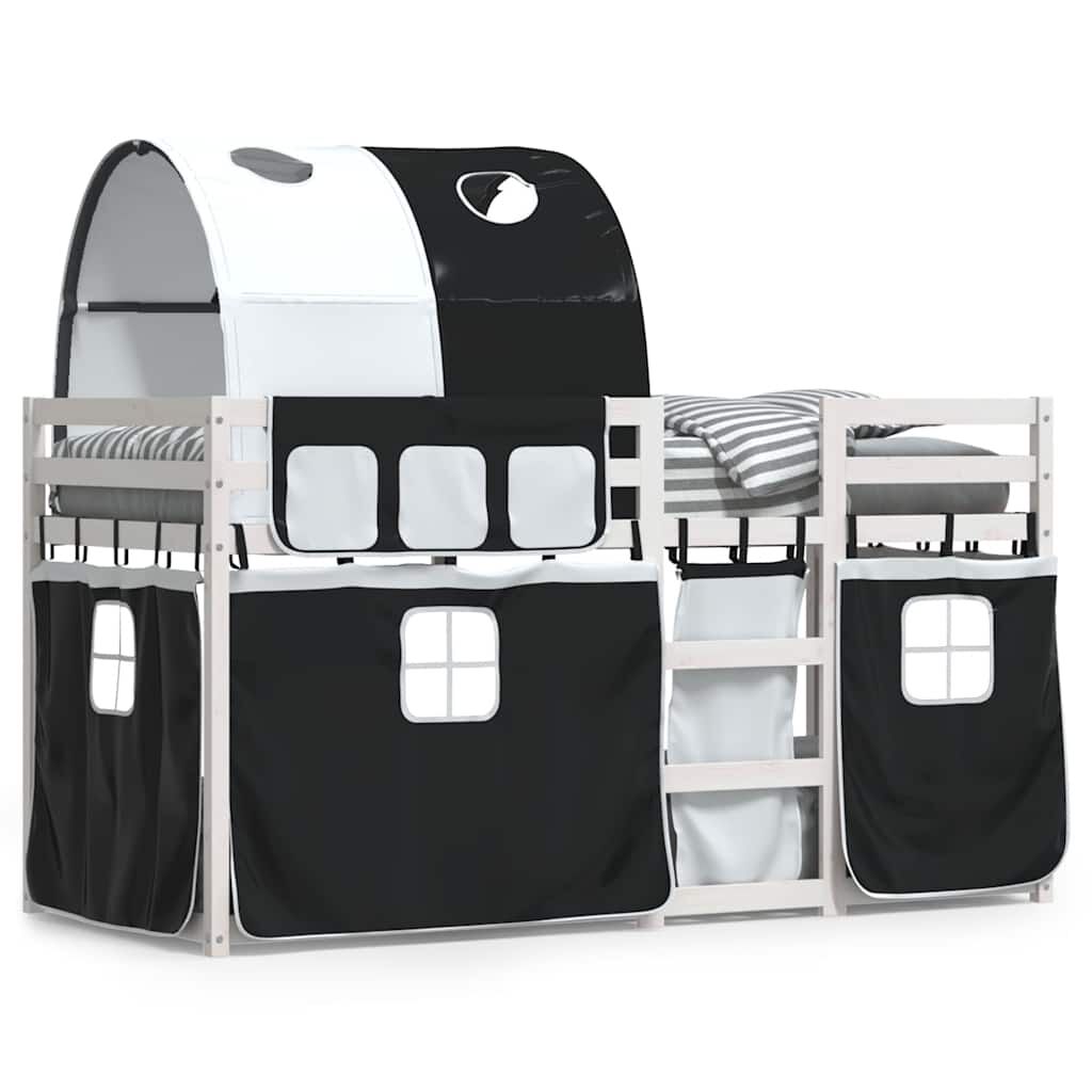 vidaXL narivoodi kardinatega, valge/must, 90x190 cm, männipuit