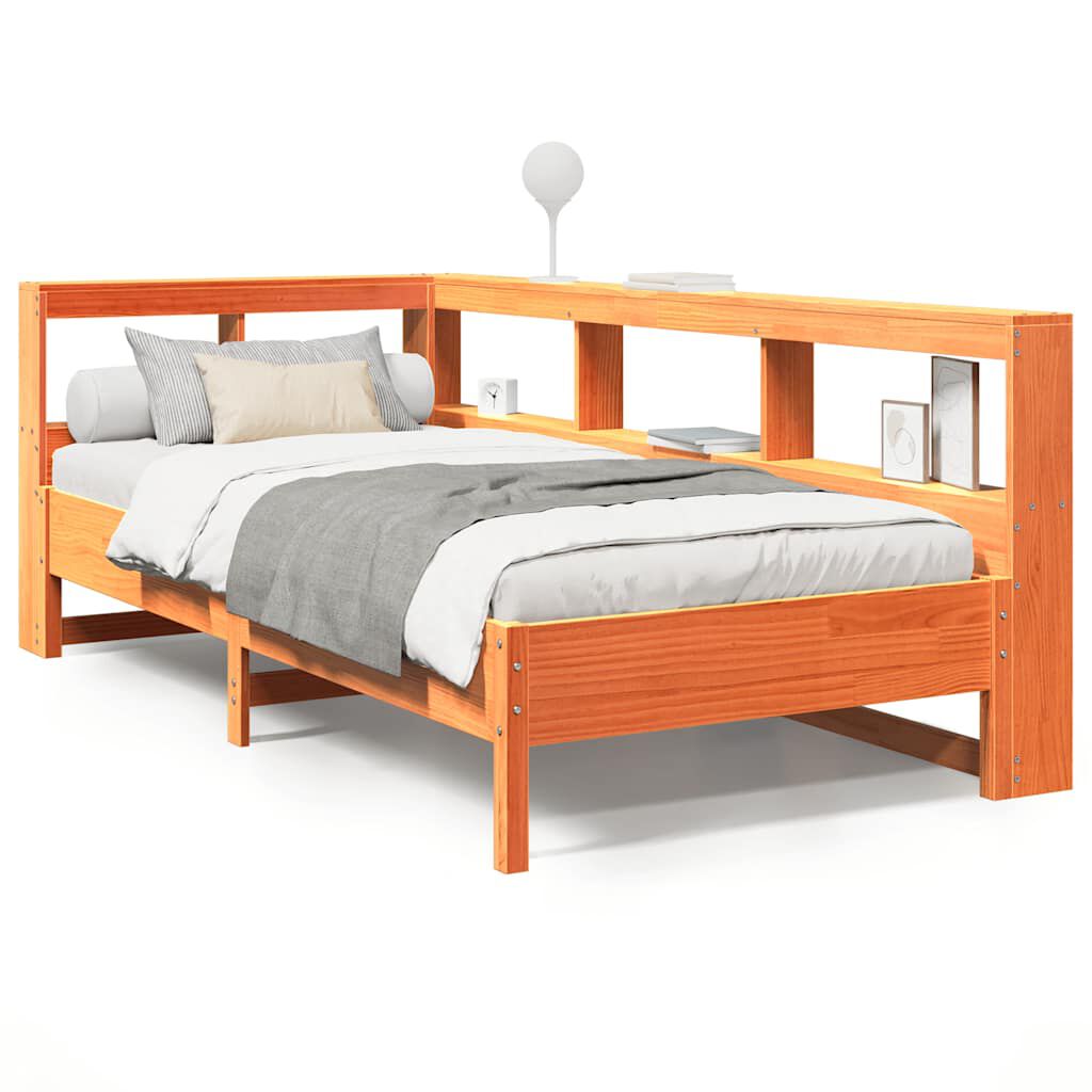 vidaXL riiuliga voodi ilma madratsita, vahapruun, 90x200 cm, männipuit