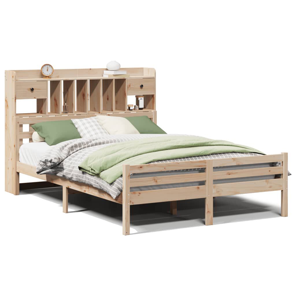 vidaXL riiuliga voodiraam ilma madratsita, 150 x 200 cm, männipuit