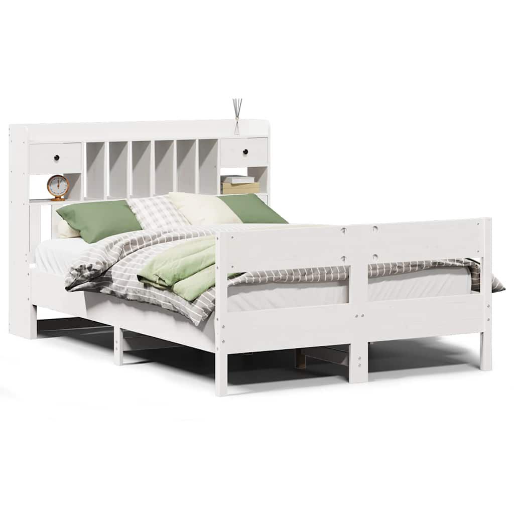 vidaXL riiuliga voodiraam ilma madratsita, valge, 140x200cm, männipuit