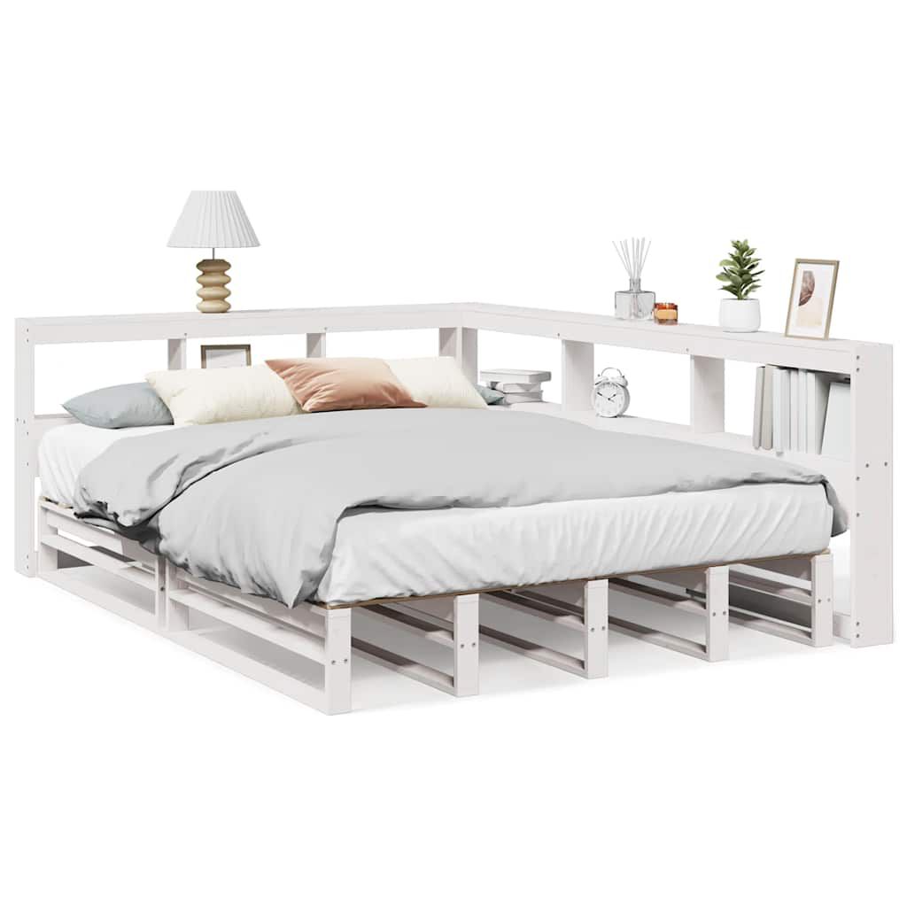 vidaXL riiuliga voodiraam ilma madratsita, valge, 160x200cm, männipuit