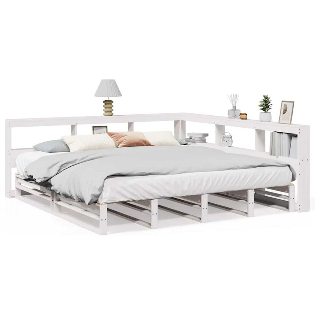 vidaXL riiuliga voodiraam ilma madratsita, valge, 180x200cm, männipuit