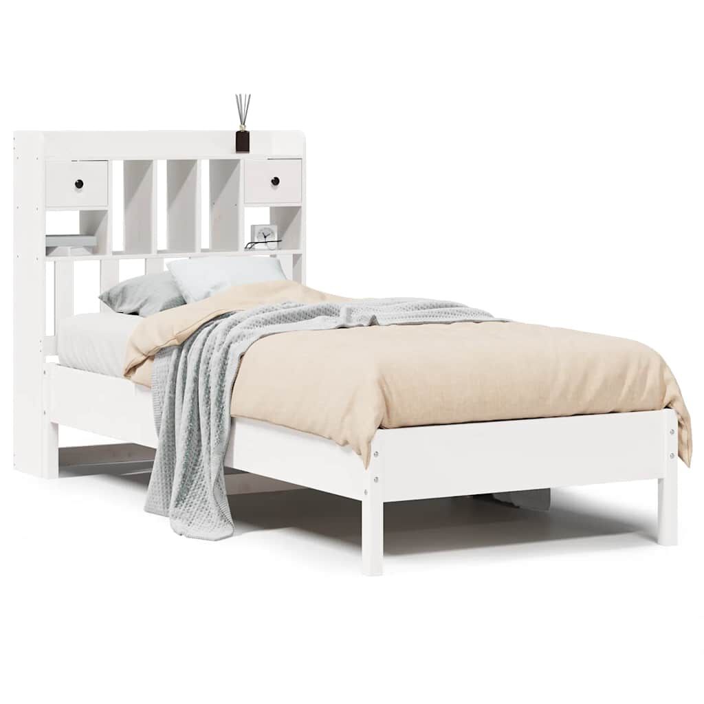 vidaXL riiuliga voodiraam ilma madratsita, valge, 75x190 cm, männipuit