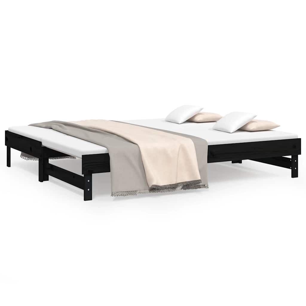 vidaXL väljatõmmatav päevavoodi, must, 2 x (80x200) cm, männipuit