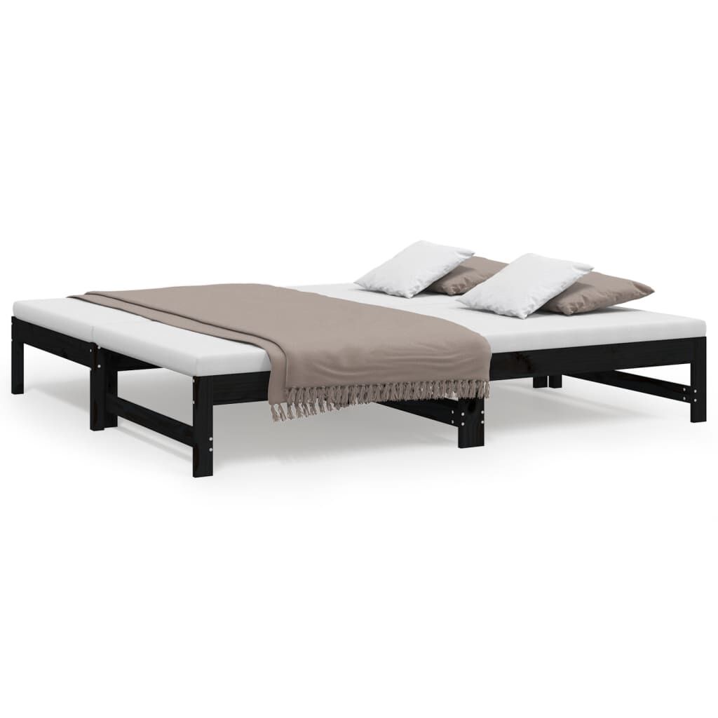 vidaXL väljatõmmatav päevavoodi, must, 2 x (90x190) cm, männipuit