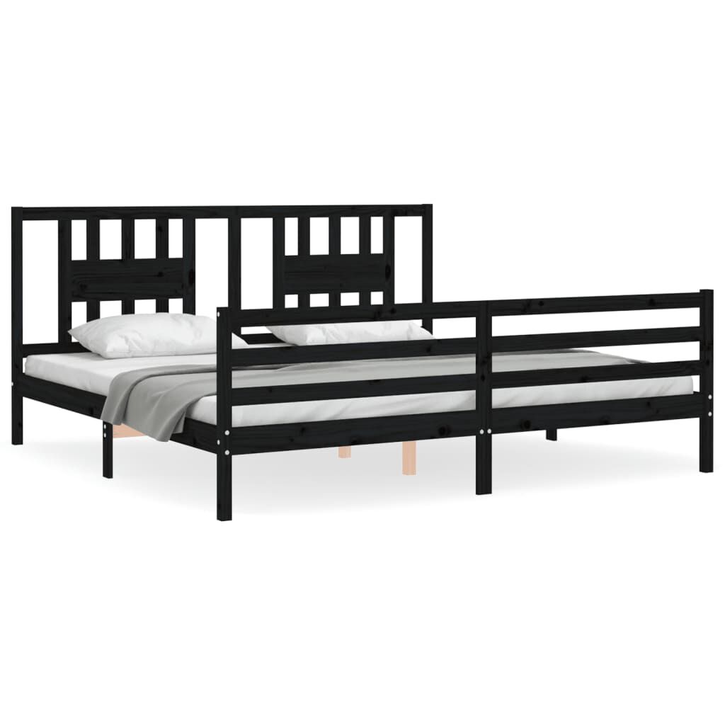 vidaXL voodiraam peatsiga, must, 200 x 200 cm, täispuit