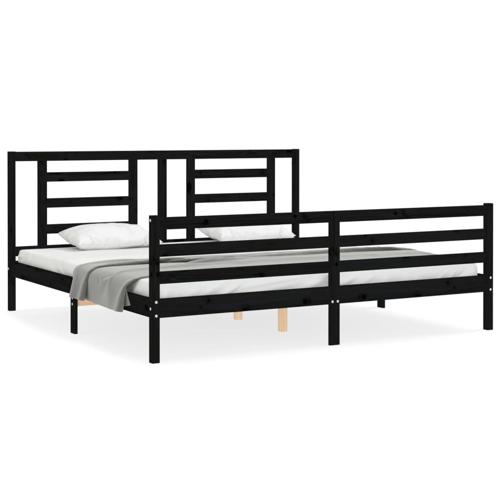 vidaXL voodiraam peatsiga, must, 200 x 200 cm, täispuit