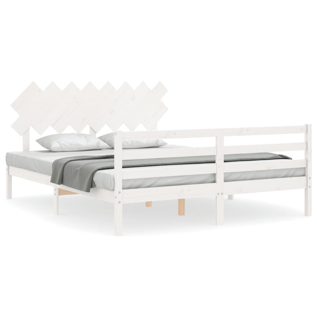 vidaXL voodiraam peatsiga, valge, 160 x 200 cm, täispuit