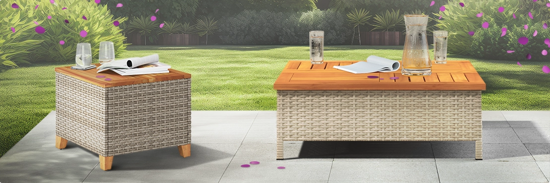 Kujuta ette: veedad oma päeva stiilselt lamades suure sinise taeva all ja nautides pärast seda õhtusööki. Meie naturaalsest ja sünteetilisest rotangist aiamööblikomplektid on sinu võti õues aja veetmiseks, muutes sinu tagaaia lõõgastavaks ruumiks. Intiimsed kogunemised või elavad peod muudavad iga hetke oluliseks mööbliga, mis on ühtlasi taskukohane ja stiilne. Lisaks muudab punutud disain nii naturaalse kui PE rotangi hingavaks, kutsudes sind nautima mugavat aeglast elu õues.