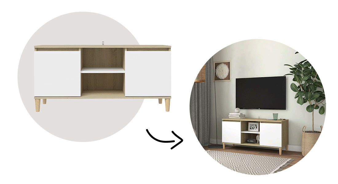 Vali puhtad jooned, korras ruumid ja neutraalne värvipalett, et luua rahutunnet. Näiteks naturaalse puidustruktuuri ja valgete ustega telerikapp. Hoia oma asju uste taga kodu korrastamiseks, kuid jäta mõned esemed riiulitele, et lisada natuke värvi.