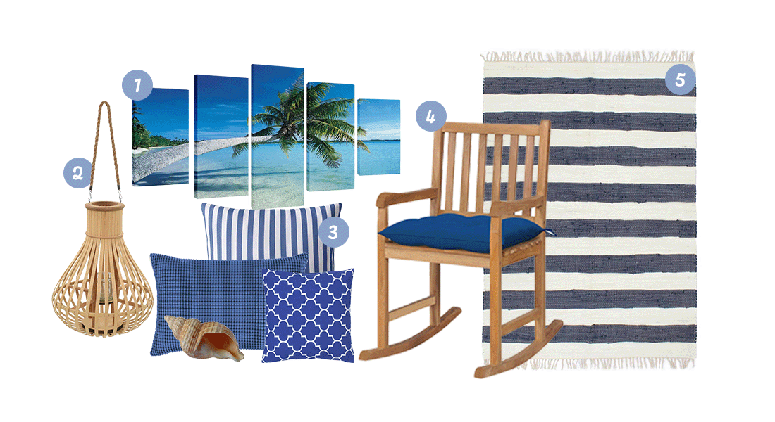 Õiged rannikut meenutavad aksessuaarid on iga ookeanist inspireeritud sisustuse süda. Meremotiive saab mitmel viisil nutikalt oma koju tuua. Näiteks saad valida rotangist alusega valgustid, merekarpidega kaunistatud lambivarjud või savist lambivarjud. Taimed on hädavajalikud ning võid valida kas vähest hooldust vajava sukulendi või palmipuu olenevalt sellest, mida su kodu võimaldab.